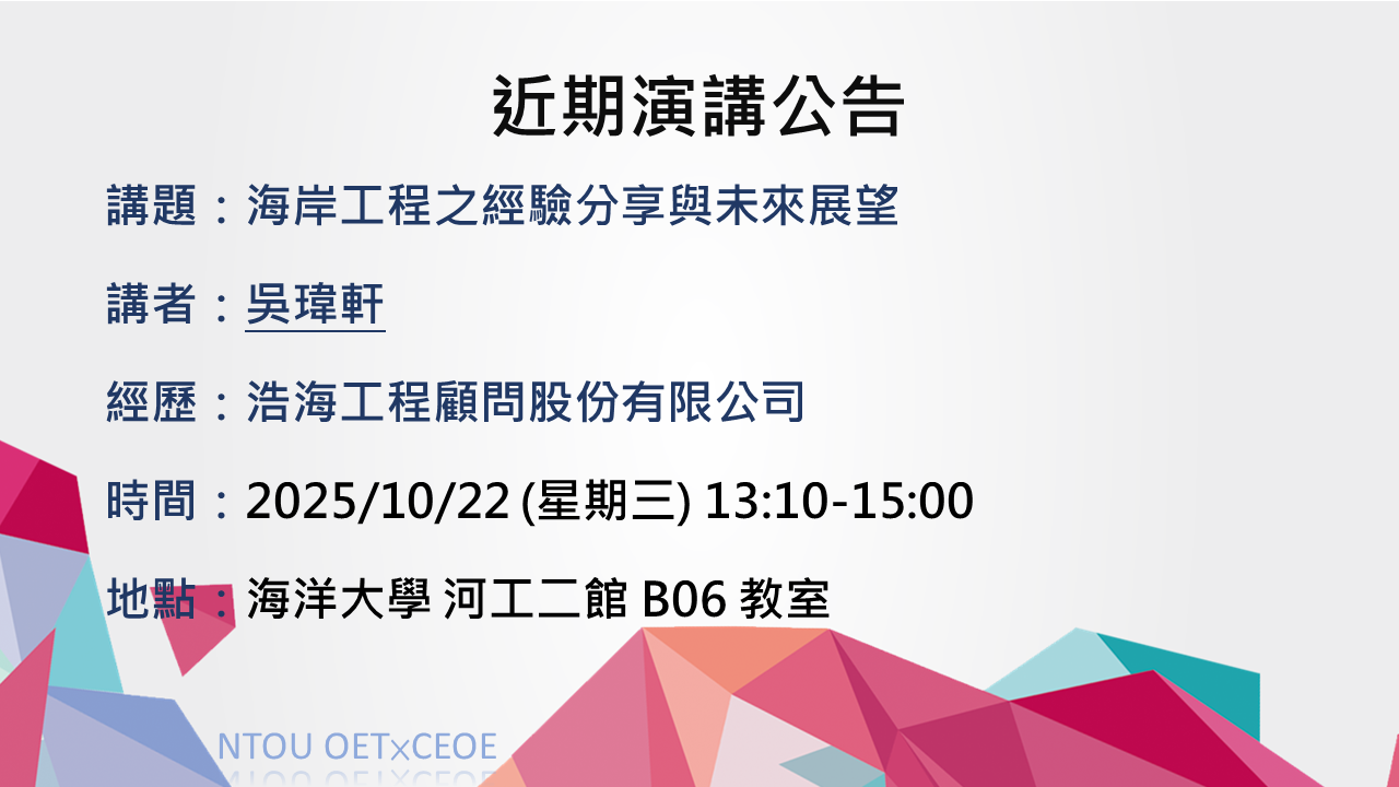 演講》海工系 2025/10/22 (三) 吳瑋軒 浩海工程顧問股份有限公司